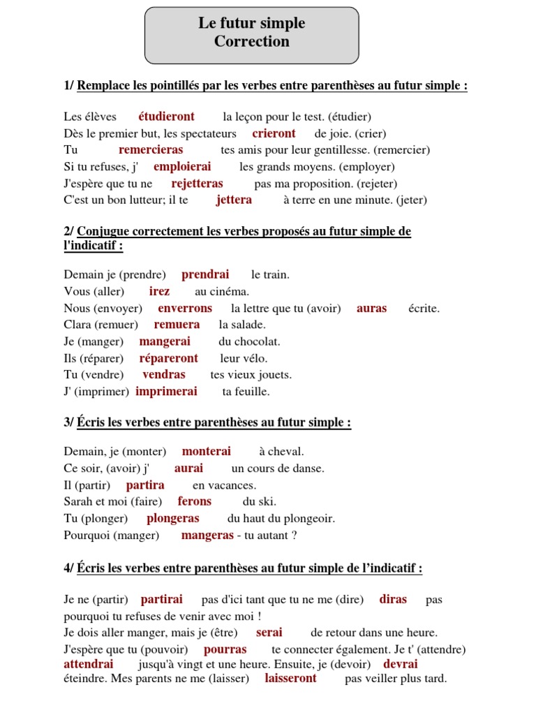 5ème, fiches au format pdf, doc et rtf. Exercices corrigés à imprimer et modifier de la catégorie français : 5ème conjugaison le futur simple de l'indicatif leçon et exercices. 5ème conjugaison l'imparfait de l'indicatif leçon et exercices. Cours, exercices et évaluation à imprimer de la catégorie probabilités :